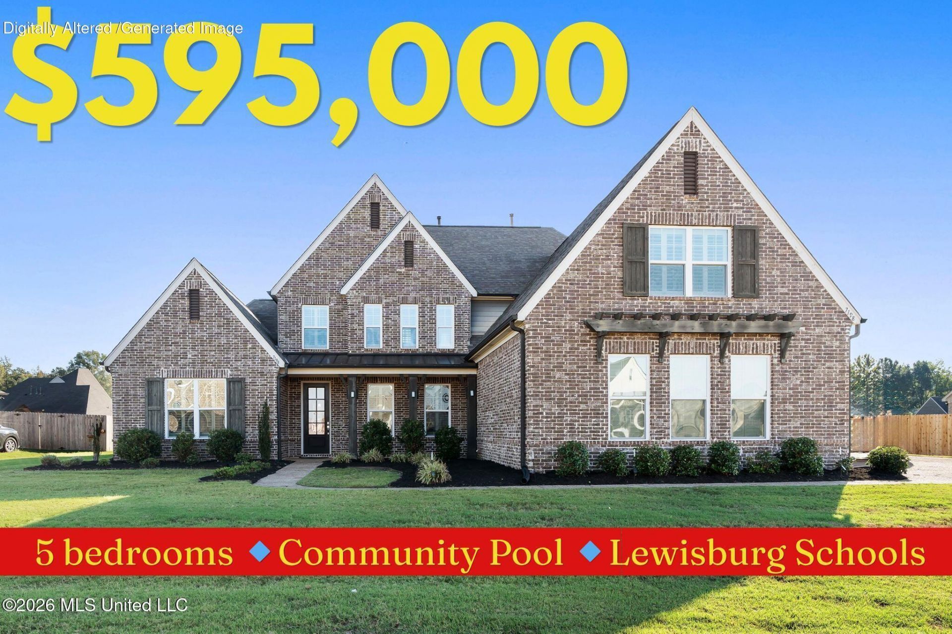 **Welcome to 7198 Harrier Drive--where thoughtful design, upscale finishes, and an unbeatable location come together in the heart of top-rated Lewisburg Schools.**This like-new home features **5 bedrooms and 3.5 baths**, including **two primary suites on the main level**, offering flexibility for multi-generational living or ideal guest accommodations. Step inside through the **double door entry** and you're greeted by fresh paint, abundant natural light, and beautiful **plantation shutters** throughout.The main living area offers a spacious **open-concept layout** anchored by a **gas fireplace**, flowing seamlessly into a stunning kitchen complete with **quartz countertops, gas cooktop, walk-in pantry, large center island**, and a **one-of-a-kind integrated breakfast table**--a functional and stylish focal point you won't find just anywhere.Enjoy hosting in the **formal dining room** or relax on the **oversized covered patio** for effortless indoor-outdoor living.The **primary suite** is a true retreat, featuring a spa-like bath with **quartz countertops, soaker tub, large walk-in shower**, and an **expansive walk-in closet connected directly to the laundry room**.Upstairs offers **three additional bedrooms, a full bath**, and a versatile **bonus room**--perfect for a media room, playroom, or additional living space.Outside, you'll appreciate the **3-car garage and widened driveway**, providing ample parking for family and guests. Ideally located **within walking distance to Lewisburg Schools and the neighborhood pool**, this home offers both convenience and community in one of DeSoto County's most sought-after areas.**This home checks every box--location, layout, and lifestyle. Come experience why life is better at Harrier Drive.**